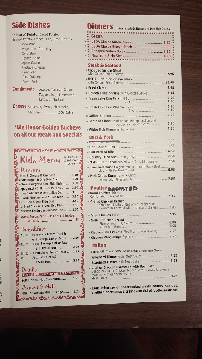Two eggs prepared to your preference from 16 options. Accompanied by ham and a choice between bacon, sausage, or Polish sausage. Select from various sides, including fresh fruits or grits, and complete with your preferred breakfast bread from a list of 15, including gluten-free options.